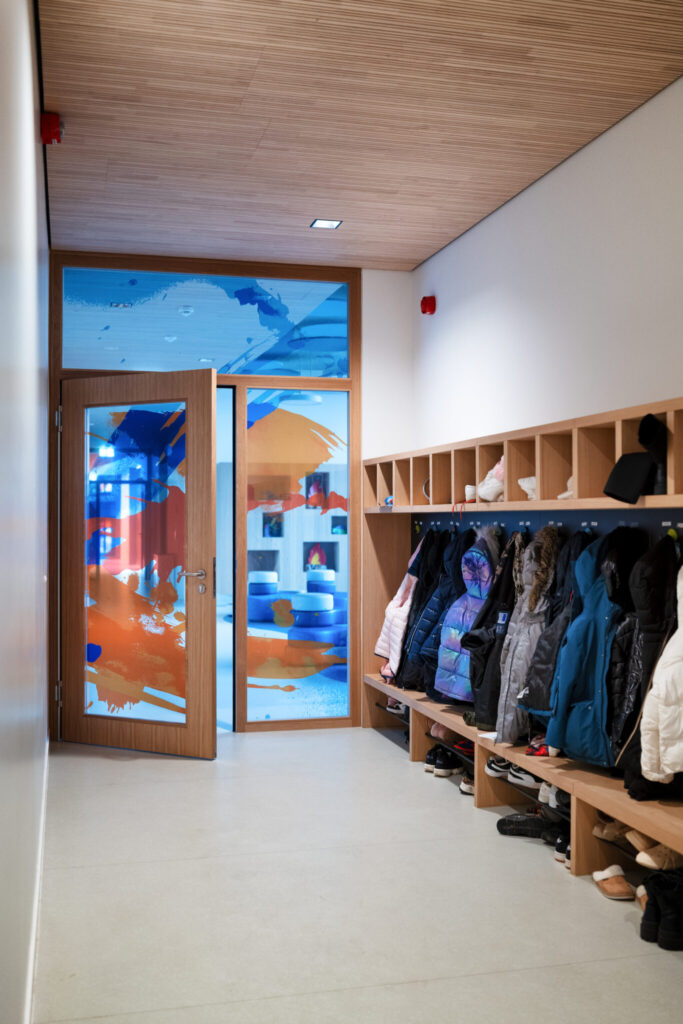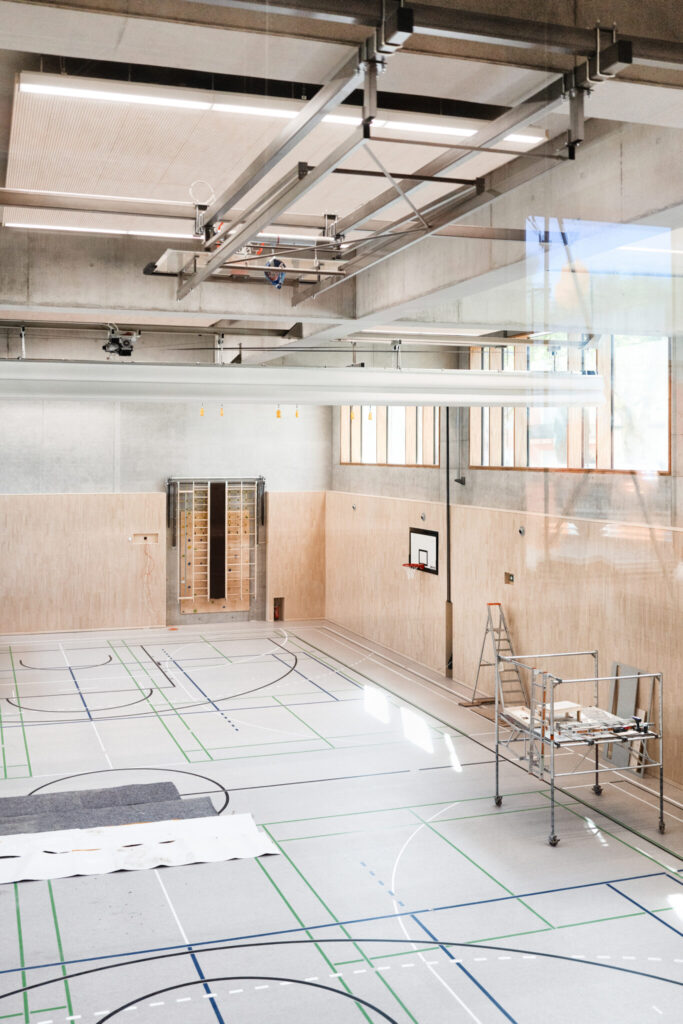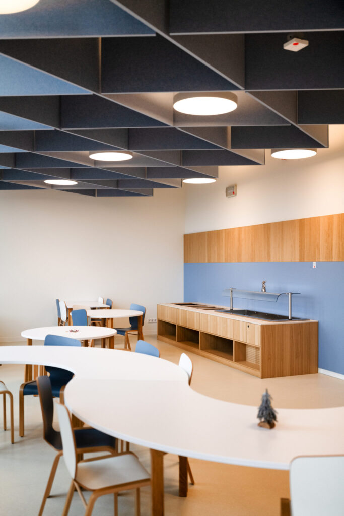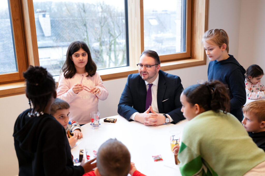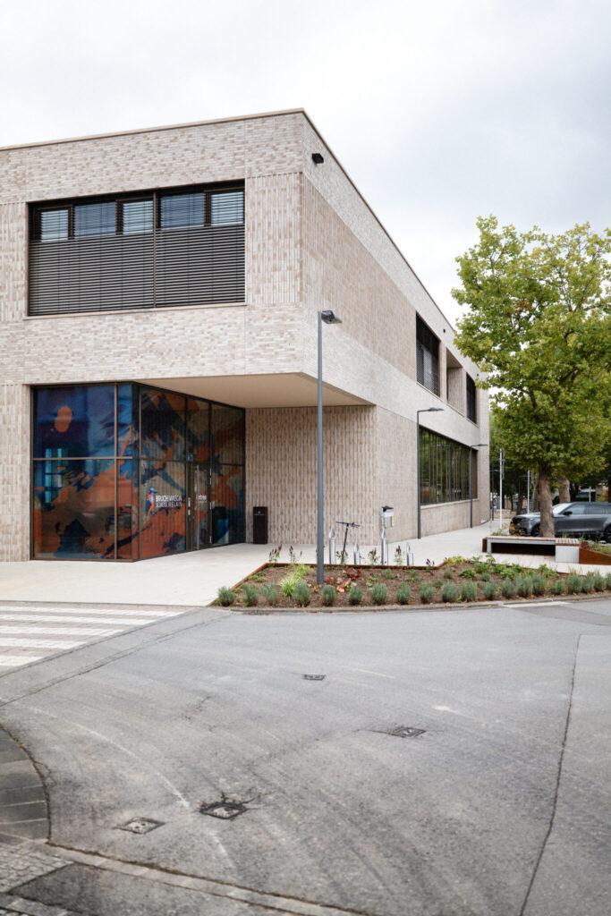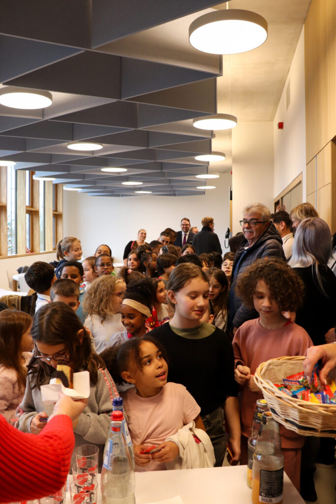 L’architecture innovante du site se distingue par des passerelles reliant les différents bâtiments et une cour de récréation centrale, créant une atmosphère conviviale et apaisée au cœur de la ville. Au-delà des briques, c’est toute l’organisation pédagogique qui a été repensée : l’école et la Maison Relais ne sont plus séparées mais fonctionnent en totale symbiose. Les espaces intérieurs sont partagés et modulables, permettant une transition fluide et harmonieuse entre les temps d’enseignement et d’accueil périscolaire pour les 360 enfants que le site pourra accueillir à terme.